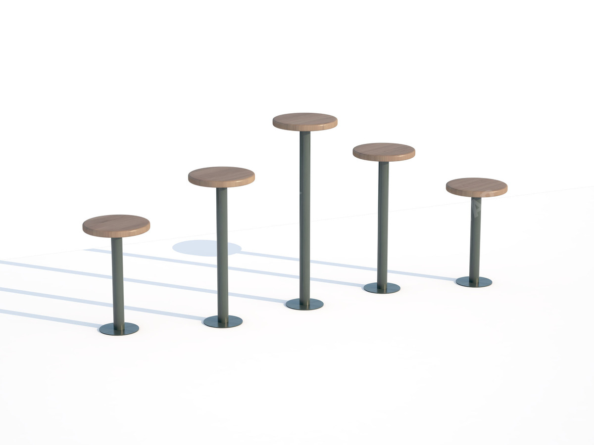 препятствие для собак «Дорожка пеньков» В основании металлический столб, покрытый порошковой краской, сверху – круглая поверхность из древесины, обработанная пропитками.